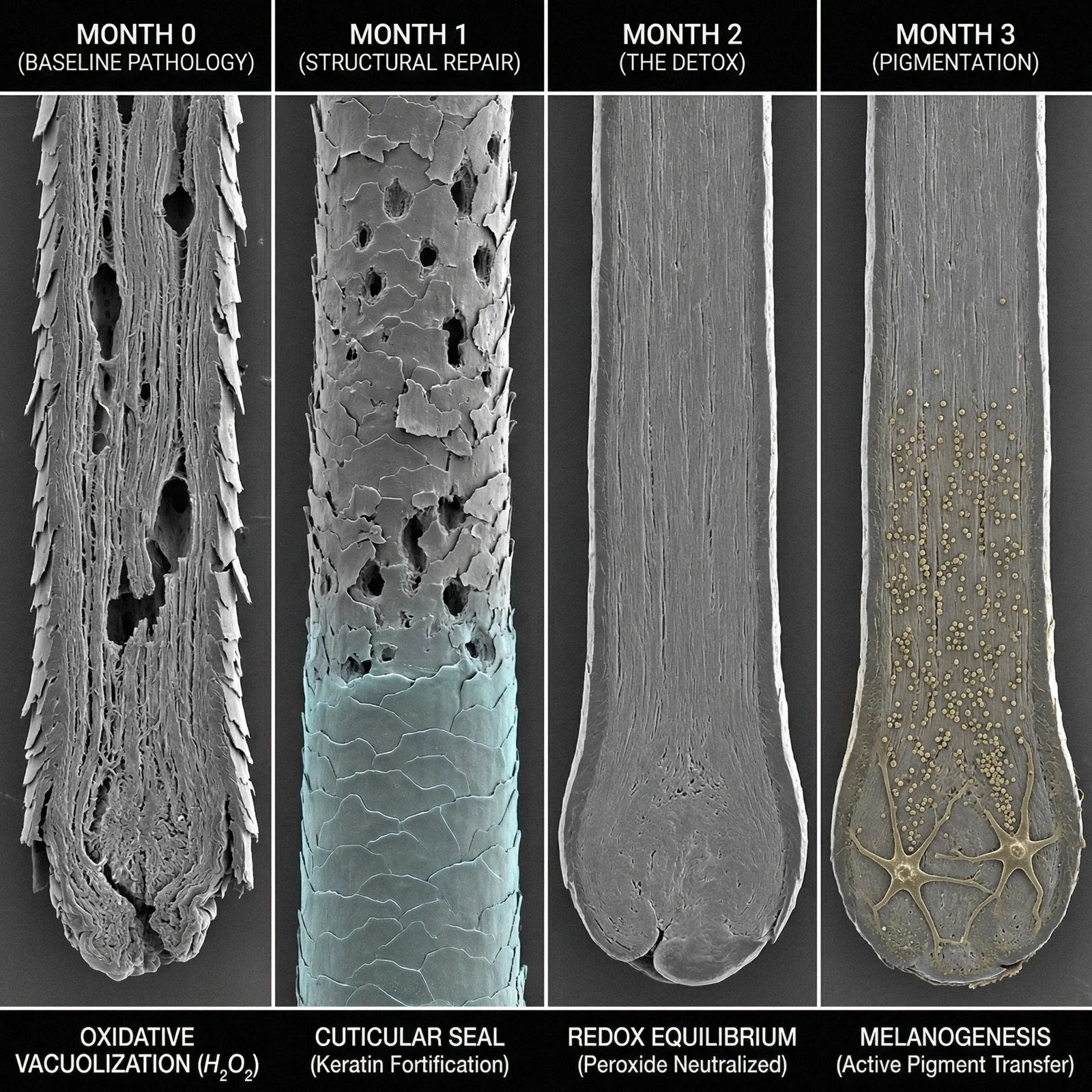 Luteolin (100mg) restores Endothelin-1 signalling, reactivating dormant melanocyte stem cells. Ascorbic Acid (100mg) regenerates oxidised Luteolin back to its active form, sustaining the catalytic cycle.